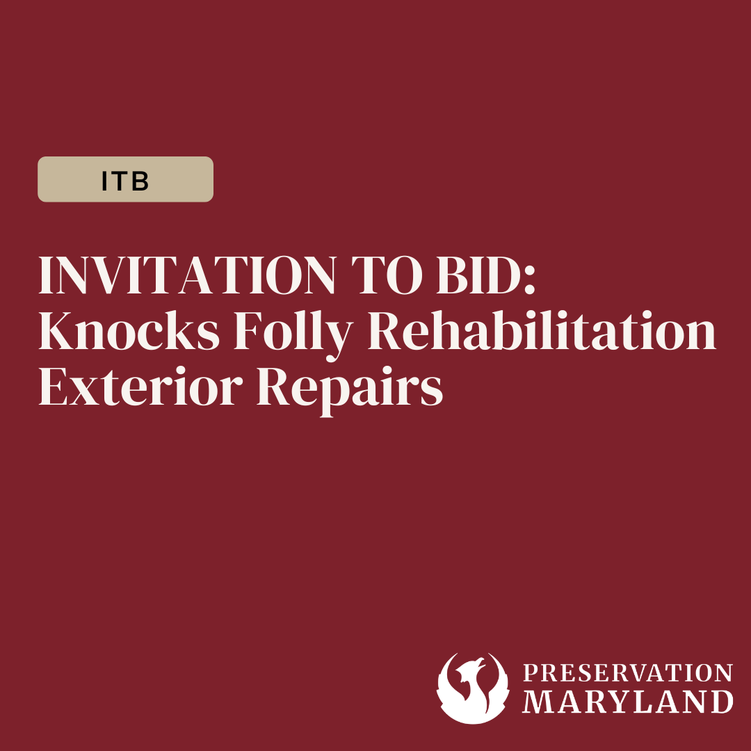 Preservation Maryland is soliciting lump sum bids from qualified firms for construction services to complete exterior repairs that will aid in the rehabilitation of the historic Knocks Folly at Turner’s Creek, located at 13761 Turners Creek Road, Kennedyville, Maryland 21645 within the boundaries of Sassafras Creek Natural Resource Management Area