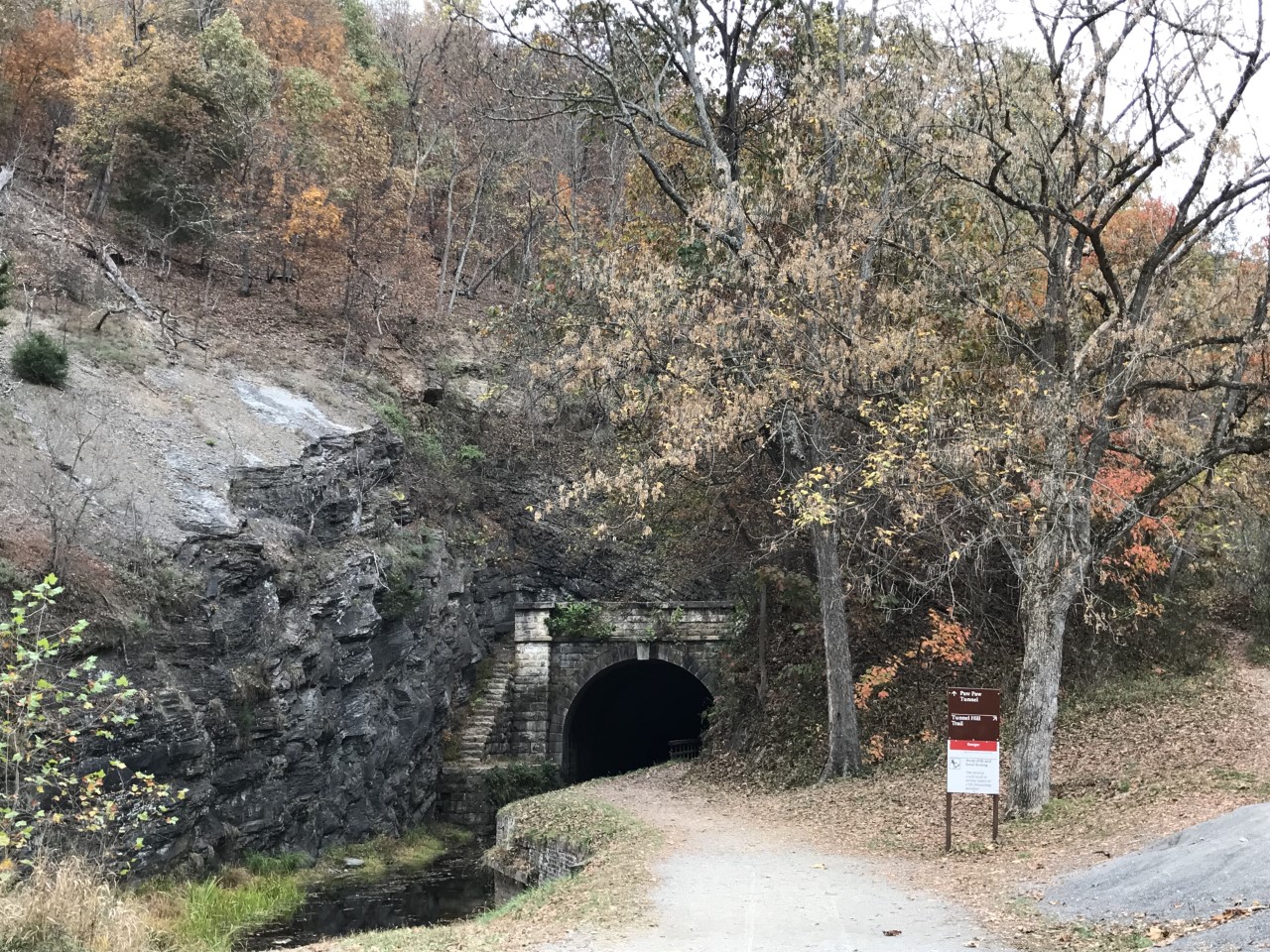 Our flashlights illuminated our way, marveling at the construction that still stands to this day, over 150 years later. The two-mile tunnel hill trail on our way back was equally spectacular, especially the parts where you could see the river far below and stops to read the interpretive markers about the German and Irish workers who lived along the path during the tunnel’s construction.