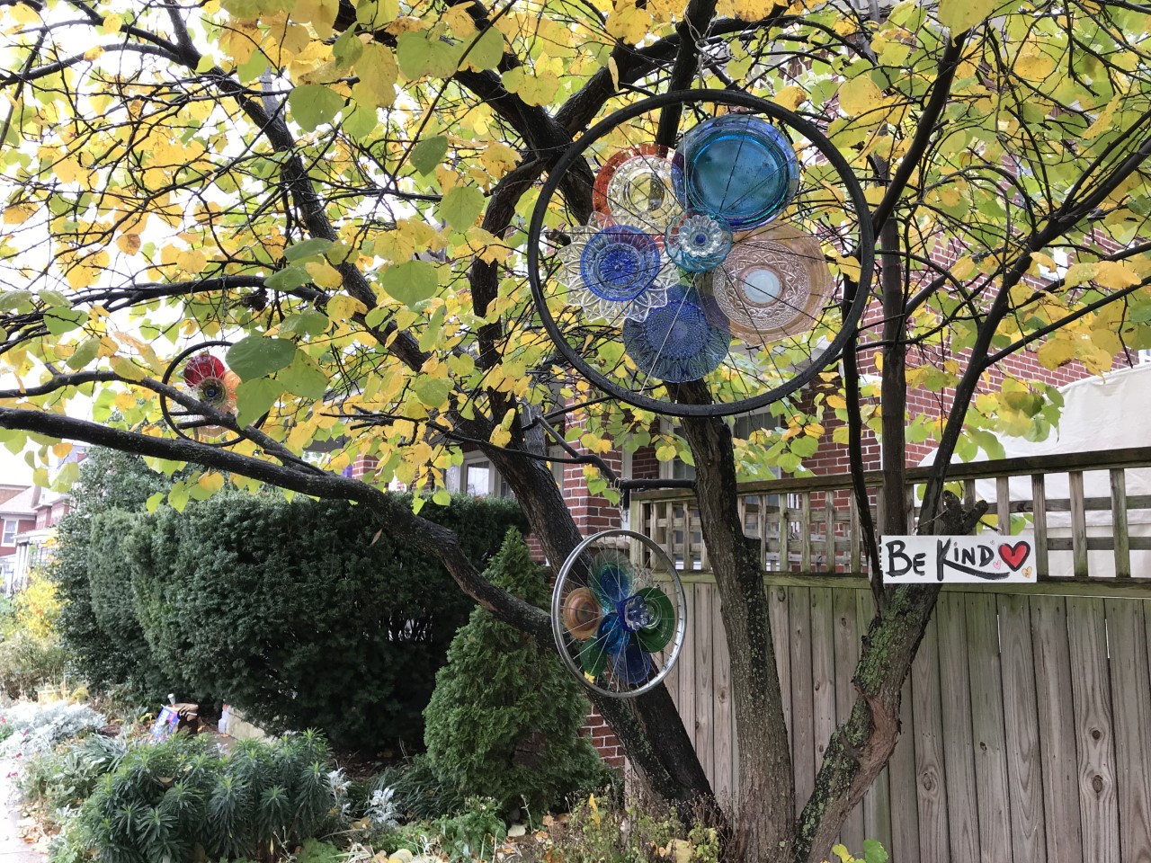It was also an unexpected delight to see some artistry on display. Someone has ingeniously found a way to create hanging glass sculptures out of vintage glassware and a bicycle rim. Now that is creative preservation.