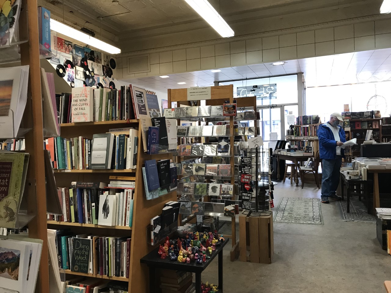 By the time we got to Frostburg, the rain was pretty heavy, so we didn’t do much exploring of the town like we did the first time around. Instead, we found two of our favorite kind of places to escape the rain. We explored the Main Street Bookstore and bought some books. We did some wine tasting at the Toasted Goat Winery Tasting Room. It is part of the Gunter Hotel built in 1897. The original hotel had a café, a barbershop and a petting zoo, complete with a tame deer. It was nice to see how the buildings along main street continue to adapt and get a new or renewed life. The tin ceiling in the tasting room was a favorite.