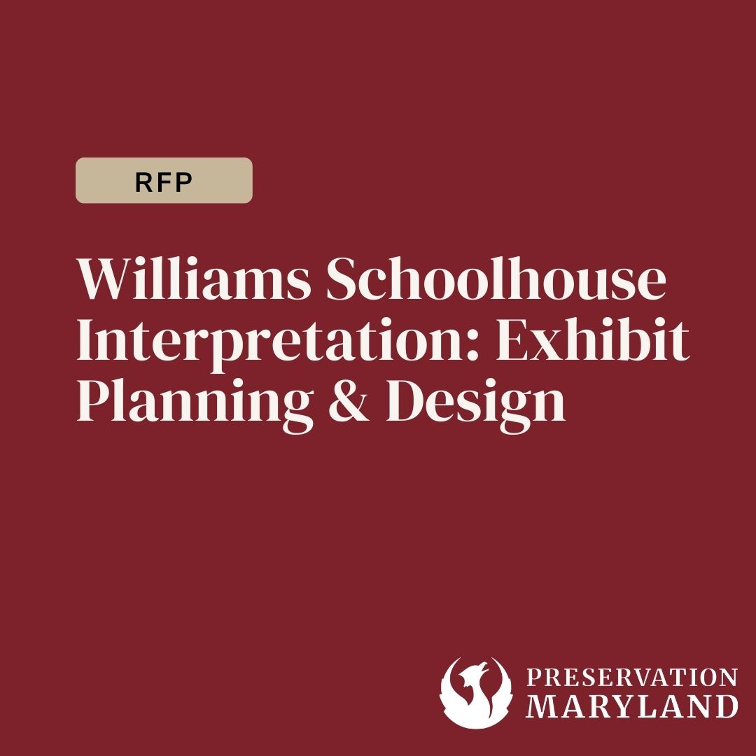 Preservation Maryland is soliciting competitive proposals from qualified firms for interpretive planning and design of an interior exhibit for the Williams Schoolhouse, located at 11347 Big Pool Road, Big Pool, MD 21711, within the boundaries of Fort Frederick State Park.